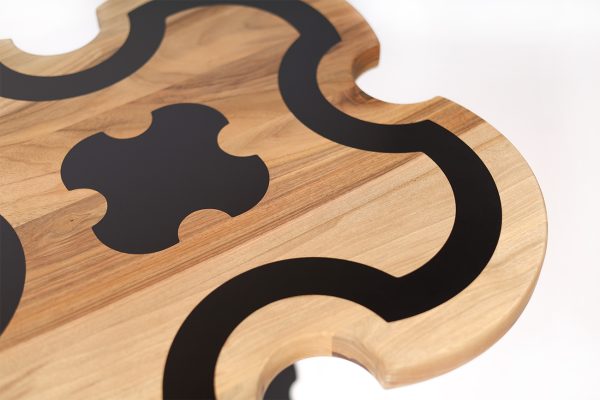 Журнальний стіл “Агат чорний” — це сучасний арт-об’єкт, який поєднує натуральні текстури з графічною строгою геометрією. Стільниця виготовлена з масиву горіха, в яку вручну залита чорна епоксидна смола — візерунок імітує природний зріз каменю агату. Основа столу — металевий стовп на дизайнерській платформі з фігурною формою, виконаний у глибокому чорному кольорі, що підкреслює естетику виробу та додає візуальної легкості.