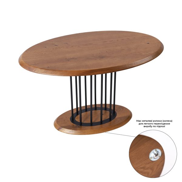 Стільниця виконана з масиву дуба, приємна на дотик і має виразний природний малюнок. Завдяки цьому кожен стіл має унікальний вигляд. Закруглені краї додають м’якості формі та роблять користування максимально комфортним і безпечним.
