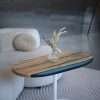 Журнальний стіл “Еліпс, блакитний острів №1” — це вишуканий та стильний елемент інтер’єру, який поєднує в собі природну красу дерева та сучасний дизайн. Стіл виготовлений із високоякісного дерева з виразними текстурами та смугами, що контрастують із насиченим блакитним епоксидним покриттям, що створює ефект “острова” серед природного матеріалу. Краї столешниці оформлені темно-синім відтінком, що додає елегантності та розкоші.