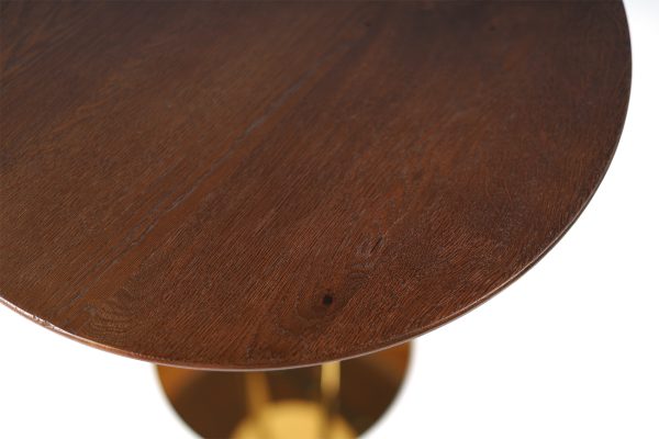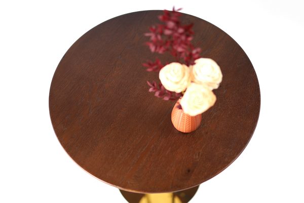 Журнальний стіл “Олександрит” з круглою стільницею з дуба та ніжками золотого кольору — це поєднання сучасного дизайну й тепла натурального дерева. Ідеальний для вашої вітальні, спальні або затишного куточка для кави.