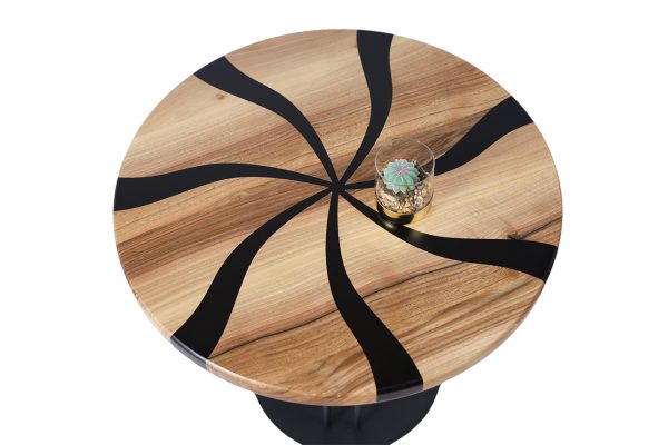 Сучасна естетика з природним акцентом — саме так можна описати журнальний стіл “Опал”. Цей витончений виріб поєднує в собі тепло натурального шпону горіха та виразний контраст чорних епоксидних вставок, які утворюють динамічний візерунок на стільниці.