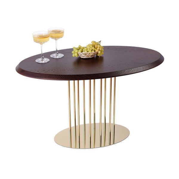Журнальний стіл “Турмалін” в кольорі “Горіх Амарена” – стильний і елегантний акцент для вашого інтер’єру. Має прямокутну форму з витонченими золотими ніжками, що додають розкоші та легкості. Розміри столу: 900×550 мм. Поверхня з натурального дерева у темному відтінку, що підкреслює його вишуканість. Золотий каркас з тонкими металевими стійками створює відчуття легкості та модерну.