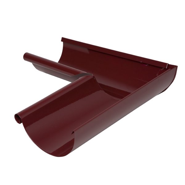 Евро поворот внутренний для евро желоба, шириной 140 мм; красный, индекс RAL 3005 единого европейского цветового стандарта. Изделия предназначается для установки на внутренних углах водосточной системы. На обе стороны изделия нанесено стойкое антикоррозионное покрытие из полимерного порошкового состава, которое обеспечивает его долговечность.