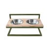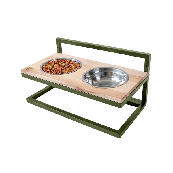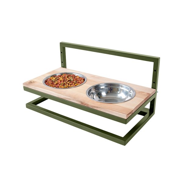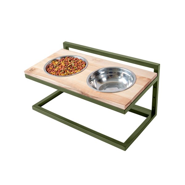 Металевий корпус годівниці пофарбований порошковою фарбою. Стільниця виготовляється з натурального дерева, яке обробляється лляною олією, що не викликає алергічної реакції. Миски в годівниці виготовлені із сталі високої якості, їх дуже просто поміняти та мити.
