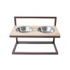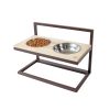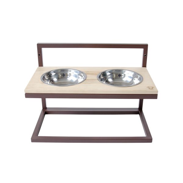 Металевий корпус годівниці пофарбований порошковою фарбою. Стільниця виготовляється з натурального дерева, яке обробляється лляною олією, що не викликає алергічної реакції. Миски в годівниці виготовлені із сталі високої якості, їх дуже просто поміняти та мити.