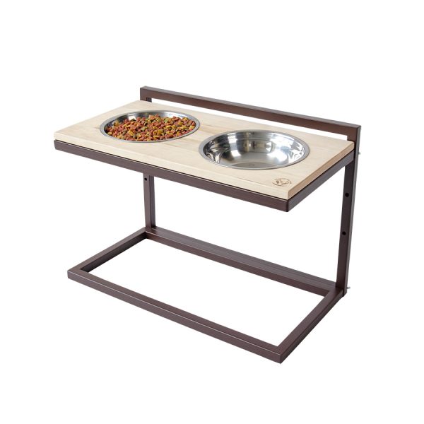 Металевий корпус годівниці пофарбований порошковою фарбою. Стільниця виготовляється з натурального дерева, яке обробляється лляною олією, що не викликає алергічної реакції. Миски в годівниці виготовлені із сталі високої якості, їх дуже просто поміняти та мити.