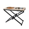 Металевий корпус годівниці пофарбований порошковою фарбою. Стільниця виготовляється з натурального дерева, яке обробляється спеціальним маслом, що не викликає алергічної реакції. Миски в годівниці виготовлені із сталі високої якості, їх дуже просто поміняти та мити.