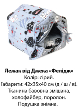Габарити лежака від Джека Фелідж – 42х35х40 см.
