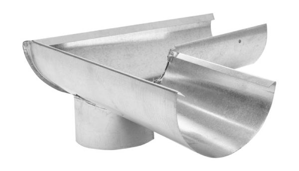 Поворотный желоб с патрубком совмещает несколько рабочих функций в системе водоотлива – это в первую очередь изменение направления на 90 градусов двух примыкающих прямых желобов, а также сброса накопившейся воды через патрубок для дальнейшего отвода. Как и все комплектующие элементы сливной системы, поворотный желоб изготовлен из оцинкованной стали. Они могут быть установлены как на одноэтажные, так на многоэтажные строения, так как обладают большим запасом прочности. Прилегающие поверхности всех трех желобов плотно совмещаются благодаря соответствию определенных стандартов и конструкторских решений для всех поступающих в продажу комплектующих.