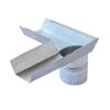 Поворотный желоб с патрубком совмещает несколько рабочих функций в системе водоотлива – это в первую очередь изменение направления на 90 градусов двух примыкающих прямых желобов, а также сброса накопившейся воды через патрубок для дальнейшего отвода. Как и все комплектующие элементы сливной системы, поворотный желоб изготовлен из оцинкованной стали. Они могут быть установлены как на одноэтажные, так на многоэтажные строения, так как обладают большим запасом прочности. Прилегающие поверхности всех трех желобов плотно совмещаются благодаря соответствию определенных стандартов и конструкторских решений для всех поступающих в продажу комплектующих.