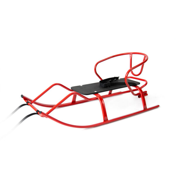 Колір санчат – червоний, каркас металевий, сидіння виконано з вологостійкої планки.